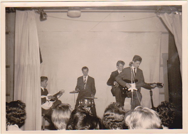 Onze versterker was kapot. Alleen Wim's gitaar aangesloten op de apparatuur de de "Rocking Explosives". We speelden Heathrock Four en The Stranger.