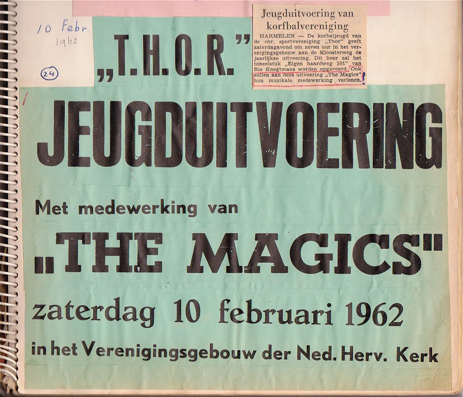10 februari. "THOR uitvoering, met medewerking van The Magics, die met hun muziek het Verenigingsgebouw op z'n grondvesten deed schudden".