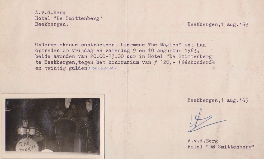 De eigenaar van het Hotel contracteert ons (zie rechts) om te komen spelen voor