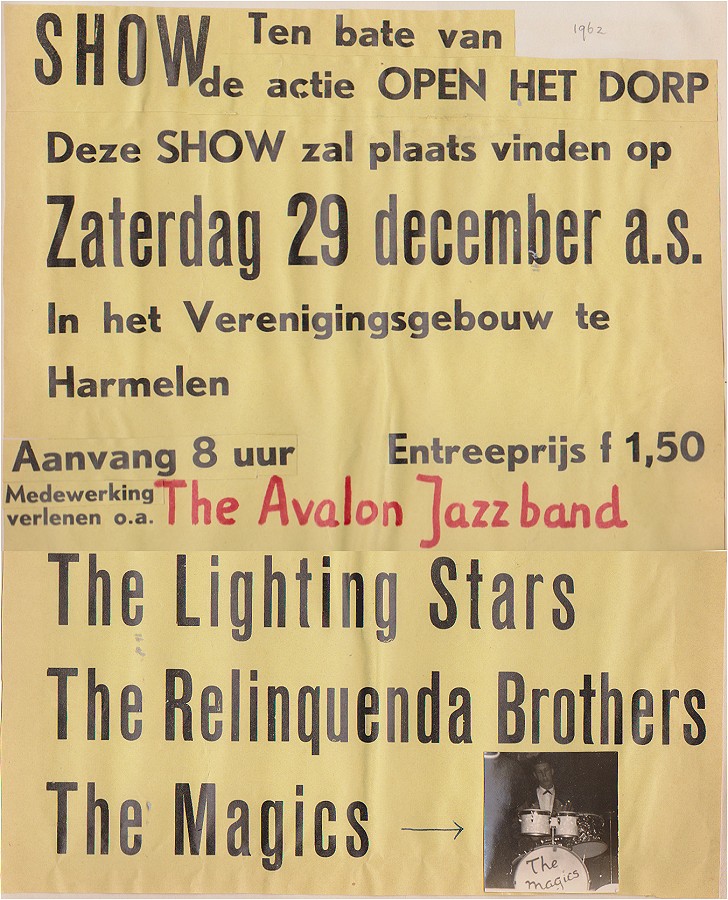 30 april. In opdracht van de Oranjevereniging in Harmelen, een Song Festival georganiseerd in het Verenigingsgebouw.