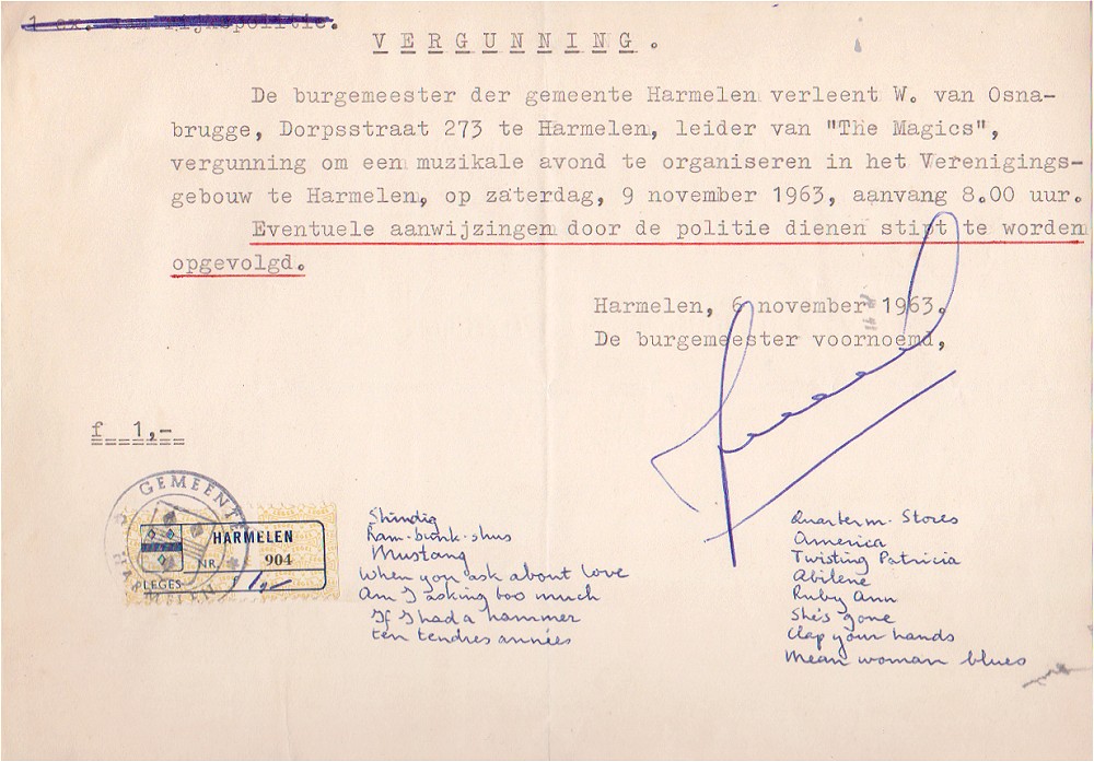 We moeten eerst vergunning aanvragen. Zie de vergunning rechts en de opmerking dat eventuele aanwijzingen van de politie stipt moeten worden opgevolgd.