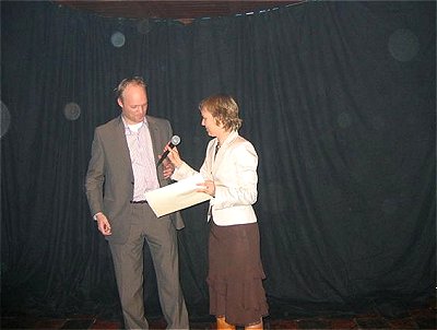 made the rounds and met everybody, his son Leo took the stage and gave Jaap a present and